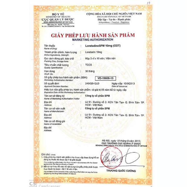 + Cân nặng > 30kg: 1 viên 10mg loratadine/1 lần/ngày